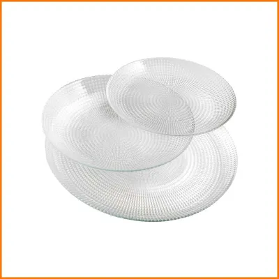 Set 18 piatti Pasabahce Generation in vetro comprende piatti da frutta, fondo e piano con diametri di 19 cm, 21,5 cm e 27 cm. Elegante e resistente, questo set è perfetto per ogni occasione, dalla quotidianità a eventi speciali. La trasparenza del vetro esalta la bellezza dei piatti, mentre la varietà di dimensioni offre versatilità per servire piatti di diverse portate. Ideale per una tavola raffinata e funzionale.